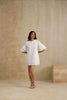 The Pink/ White Celeste Puff Sleeve Dress is a soft yet striking statement piece. Designed in a delicate tone with a textured embroidered finish, it features dramatic puff sleeves balanced by a clean, straight silhouette. Feminine, modern, and effortlessly elegant—perfect for moments that call for subtle sophistication with a playful twist.