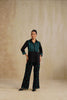 A timeless classic in white/ midnight black, these pants are elevated with subtle luxury. Delicate embroidered patterns add radiance and sophistication, making them the perfect match for the Noor Gold Detail Shirt to create a cohesive look.
